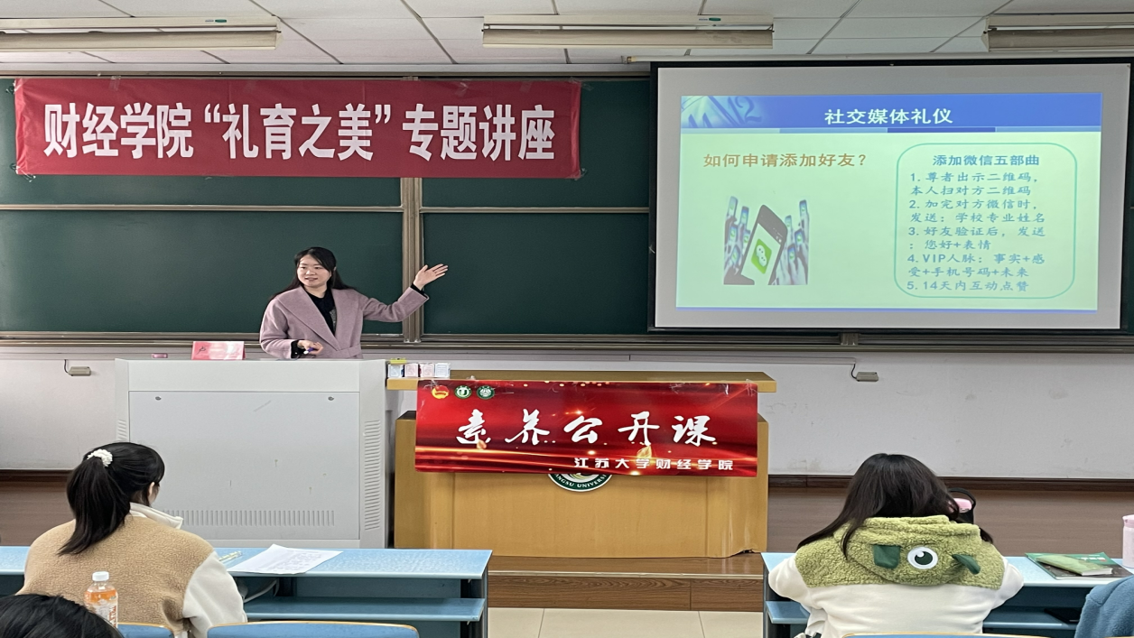为提升学生的文明礼仪素养,12月8日,财经学院在三江楼401举办“礼育之美”专题讲座。讲座由管理学院卢璐进行主讲,财经学院130余名学生参加讲座。