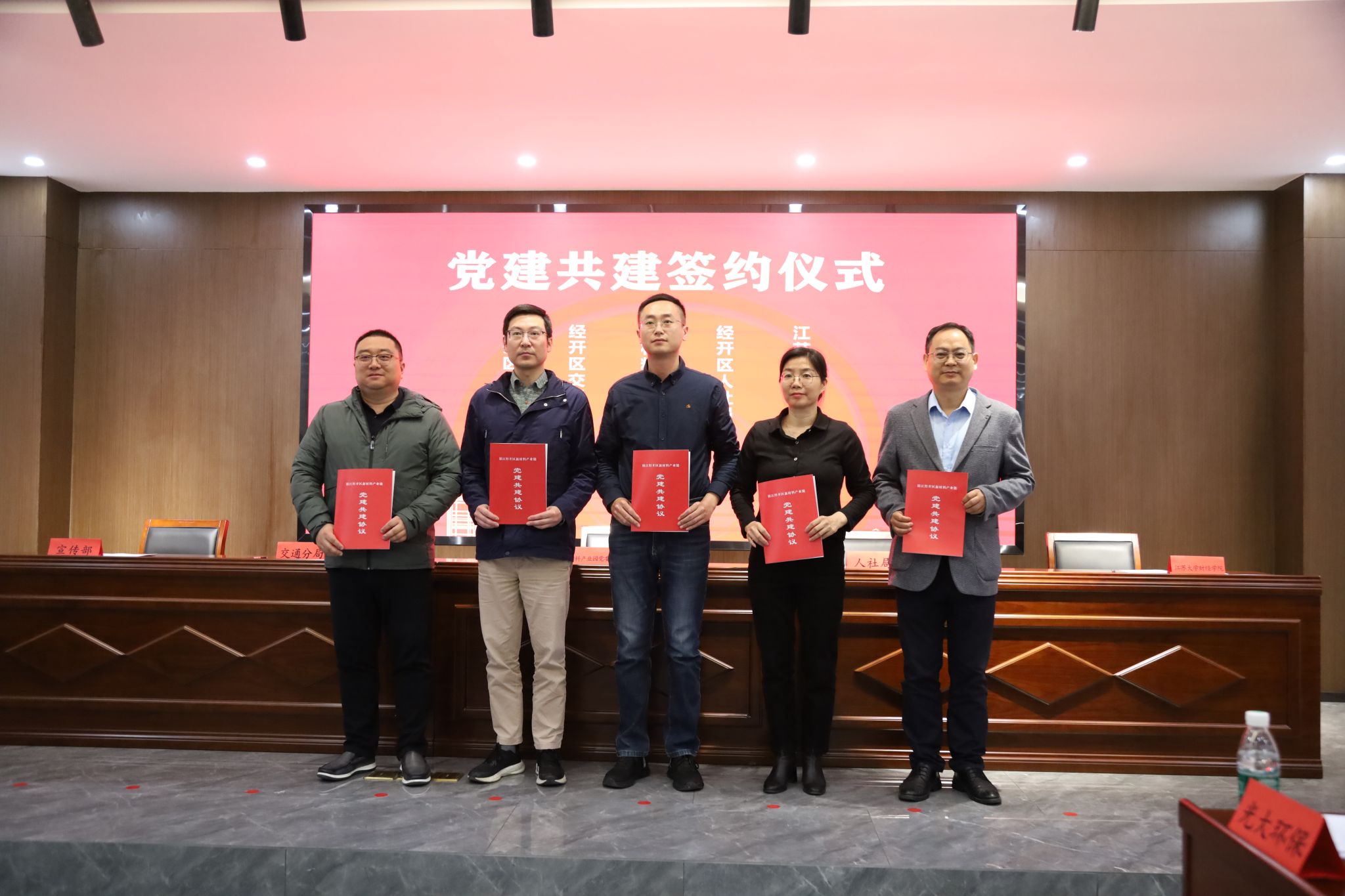 共建活动现场,财经学院党委与镇江经开区宣传统战部、人社局、江苏银行大港支行等 8 家单位,一同与新材料产业园党委签订党建共建协议。党建共建单位代表向产业链党委成员企业赠送红链礼包,传递着共建的热忱与支持。产业园相关负责人为重大项目招引、产学研攻关、政银企帮办等三个行动支部授旗,庄重而热烈的仪式激励各方积极投身党建与产业融合发展的事业中。活动当天,应新材料产业园党委邀请,财经学院产业经济研究院联合支部支委吴沁沁博士在上午为产业园干部职工做“民营经济创新与新质生产力发展”的主旨报告,院党委委员、副院长鄢军在下午代表学院党委参加座谈并签署党建共建协议,为学院与园区在多领域的合作拉开值得期待的大幕。