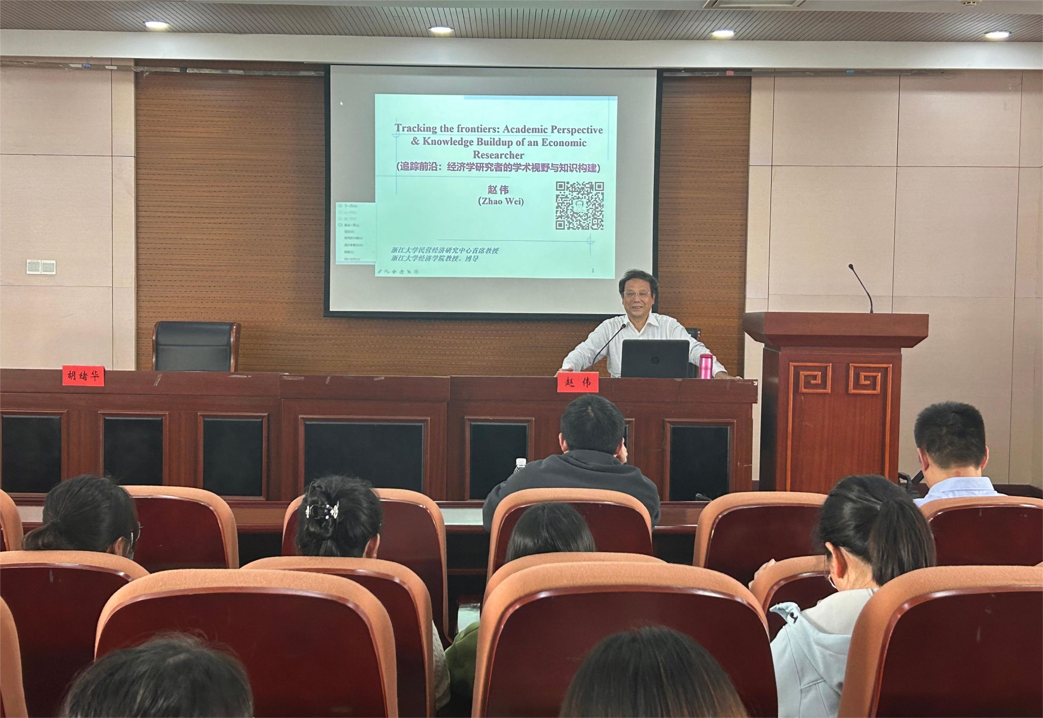 4月1日,浙江大学经济学院教授、中国区域科学协会空间经济学专业委员会副主任、浙江省经济与管理研究会副会长兼专家委员会主任赵伟教授应邀在财经学院三江楼1301报告厅举行题为“追踪学术前沿:经济学研究者的学术视野与知识构建”的学术讲座。讲座由财经学院院长胡绪华教授举行,副院长李靠队教授以及来自财经学院、管理学院的百余名师生参加了此次讲座。