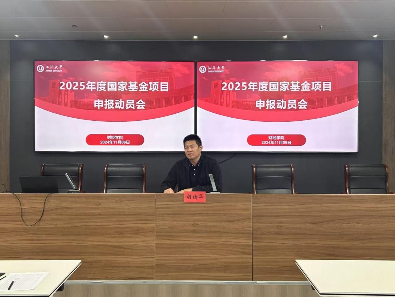 为全面贯彻江苏大学第五次党代会精神,促进我院学术成果的产出与创新转化。11月6日下午,财经学院在三江楼1301教室举行2025年度国家基金项目申报动员会。此次动员会特邀我院陈阳、卢娜两位老师进行交流分享,副院长李靠队以及财经学院的30余名教师参与了此次活动。会议由院长胡绪华主持。