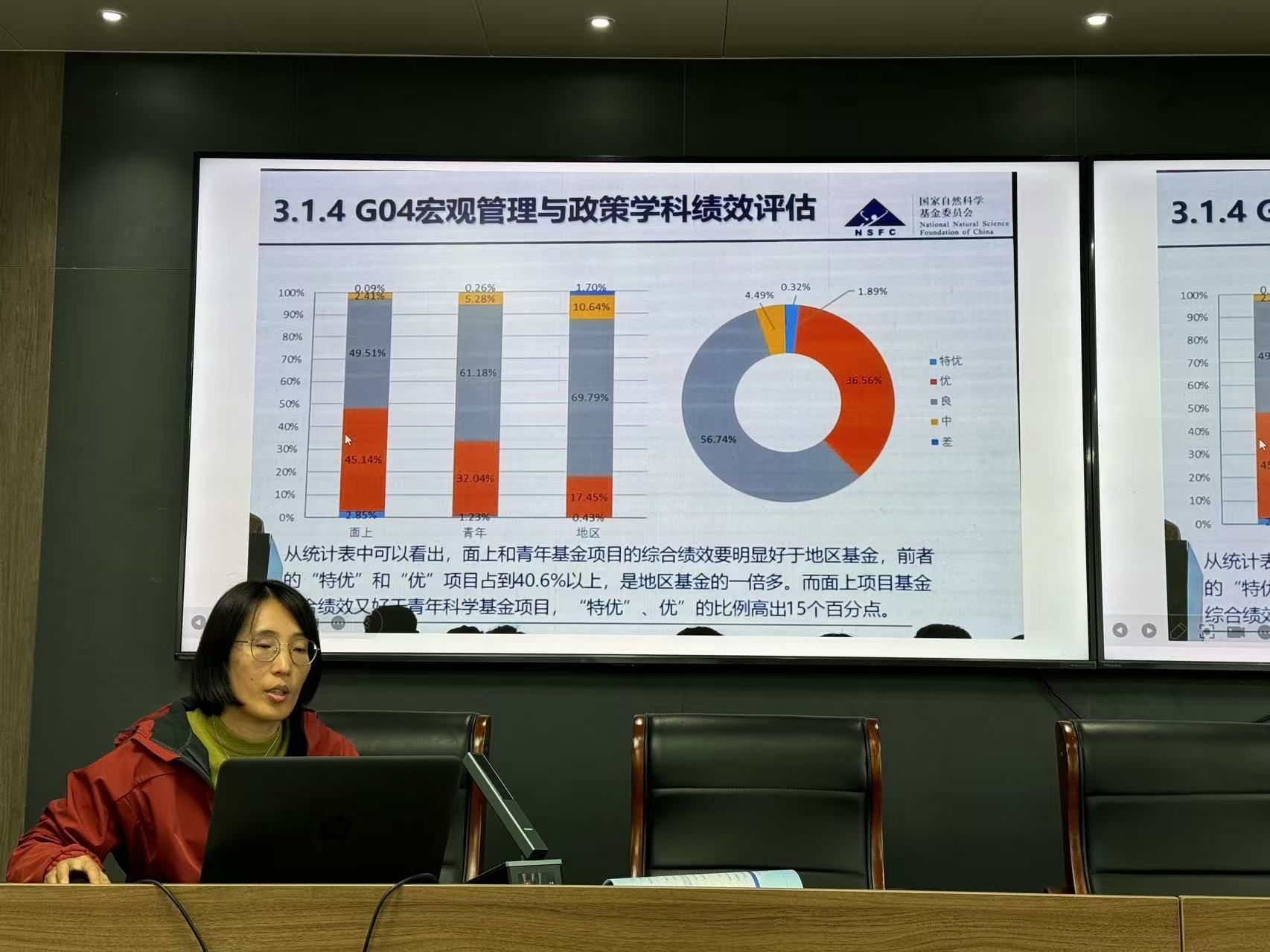 会上,陈阳老师以“2024年宏观管理与政策学科青年基金项目交流会”为主题进行汇报。他先就中国宏观管理与政策学科发展现状做了大致的分析,主要包括中美对比分析、自主项目分布图释以及现阶段面临的问题。他认为准确凝练科学问题是项目实施的关键,项目研究要“顶天立地”,要面向国家重大需求开展有组织科研。随后卢娜老师分享了课题申报和研究的经验,向大家简要地介绍了分类评审试点的方案设计、RCC试点的工作成效、G04绩效评估、宏观管理与政策学科优先资助领域等内容。