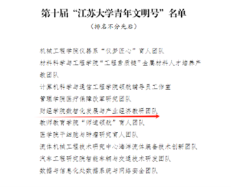 4月27日,学校发布了《关于命名表彰第十届“江苏大学青年文明号”的决定》,财经学院数智化发展与产业经济教研团队被命名表彰为第十届“江苏大学青年文明号”,吴沁沁被授予“江苏大学新长征突击手”荣誉称号。